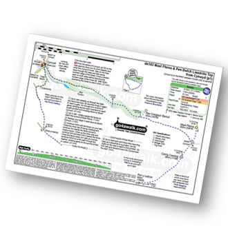 Pont Rhyd-y-fen - Pant-yr-Hedydd - Llyn Arenig Fawr - Carreg Lefain - Y Wern - Y Castell - Bwlch Blaen-y-nant - Arenig Fawr (Moel Yr Eglwys) - Crag y Hyrddod - MaenGrugog - ClogwenDu - Pont Rhyd-y-fen